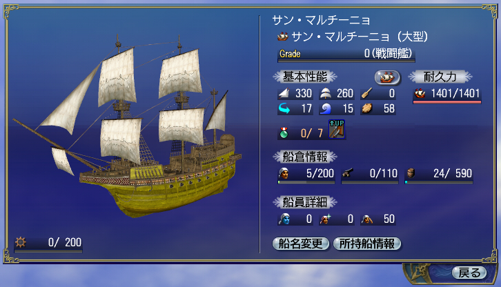 強力な戦闘性能を有するサン・マルチーニョと引き換えができる券。 ※船の詳細は下記と、ゲーム内のDelfinショップでご確認ください。 ※この引換券で交換した船には、オプションスキルが1つランダムで付与されます。 |